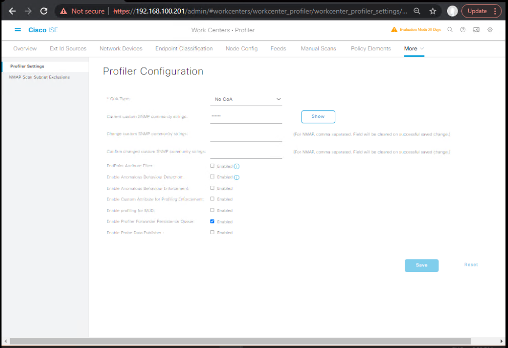 Important: If you enable the DHCP probe, make sure DHCP messages are visible to ISE. In many labs you’ll use DHCP snooping + ISE listening on the management network, or forward DHCP packets via DHCP relay—plan accordingly.