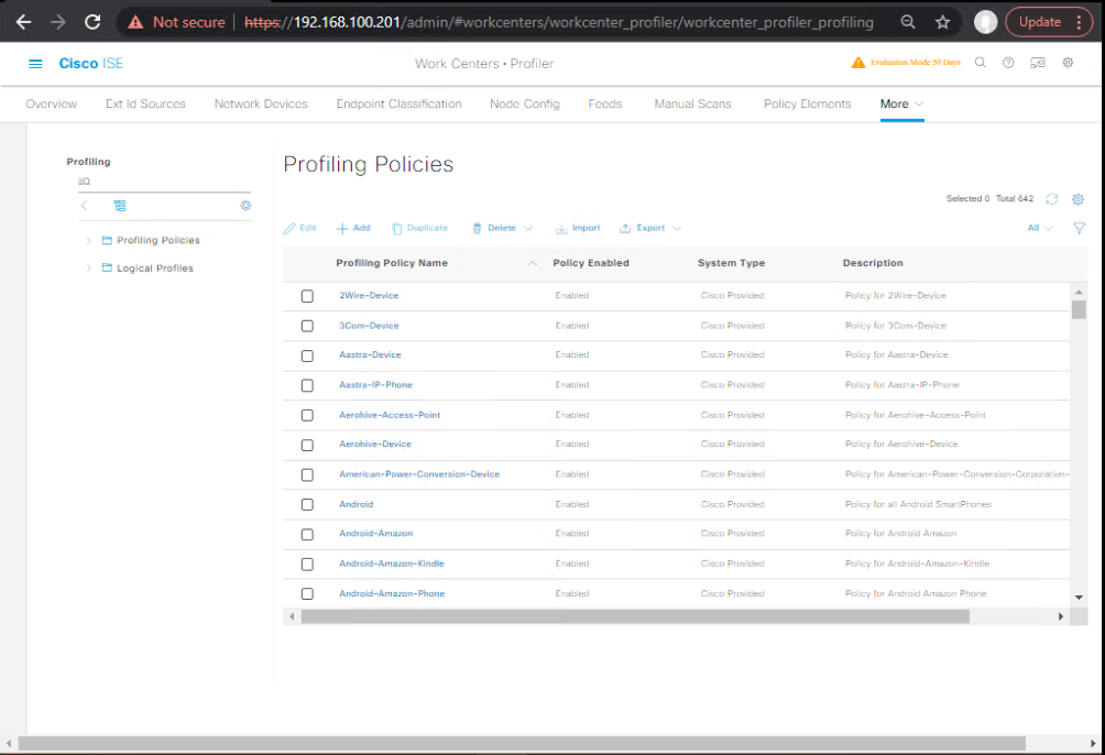 Profiling is the process by which Cisco ISE automatically identifies the type of device (Windows PC, IP phone, printer, IoT camera, game console, etc.) that connects to your network by observing network behaviour and attributes (DHCP, RADIUS, HTTP, SNMP, NetFlow, ARP, MAC OUI, etc.). Profiling is critical because: