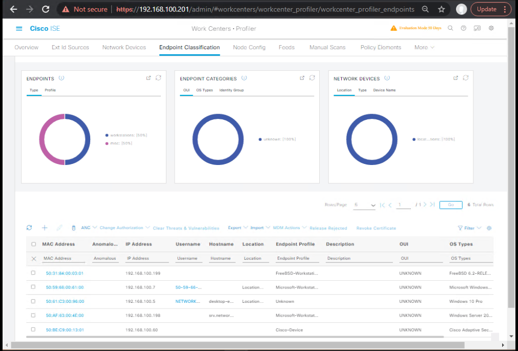 - On ISE: Work Centers → Profiler → Endpoint Table (or Operations → Endpoints) search for MAC or IP.
